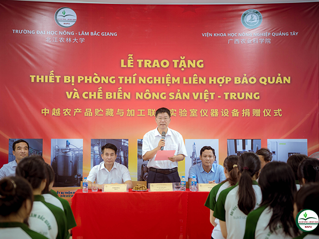 Buổi lễ vinh dự đón tiếp ông Lã Vinh Hoa – Phó Viện trưởng Viện Sáng tạo Khoa học Công nghệ Nông nghiệp Quốc tế Trung Quốc – ASEAN, cùng các nhà nghiên cứu của Viện Khoa học Nông nghiệp Quảng Tây. Về phía Trường Đại học Nông – Lâm Bắc Giang có TS. Nguyễn Tuấn Dương – Phó Hiệu trưởng, lãnh đạo các phòng ban, khoa chuyên môn, cùng đông đảo giảng viên và sinh viên khoa Cơ điện và Công nghệ thực phẩm tham dự.