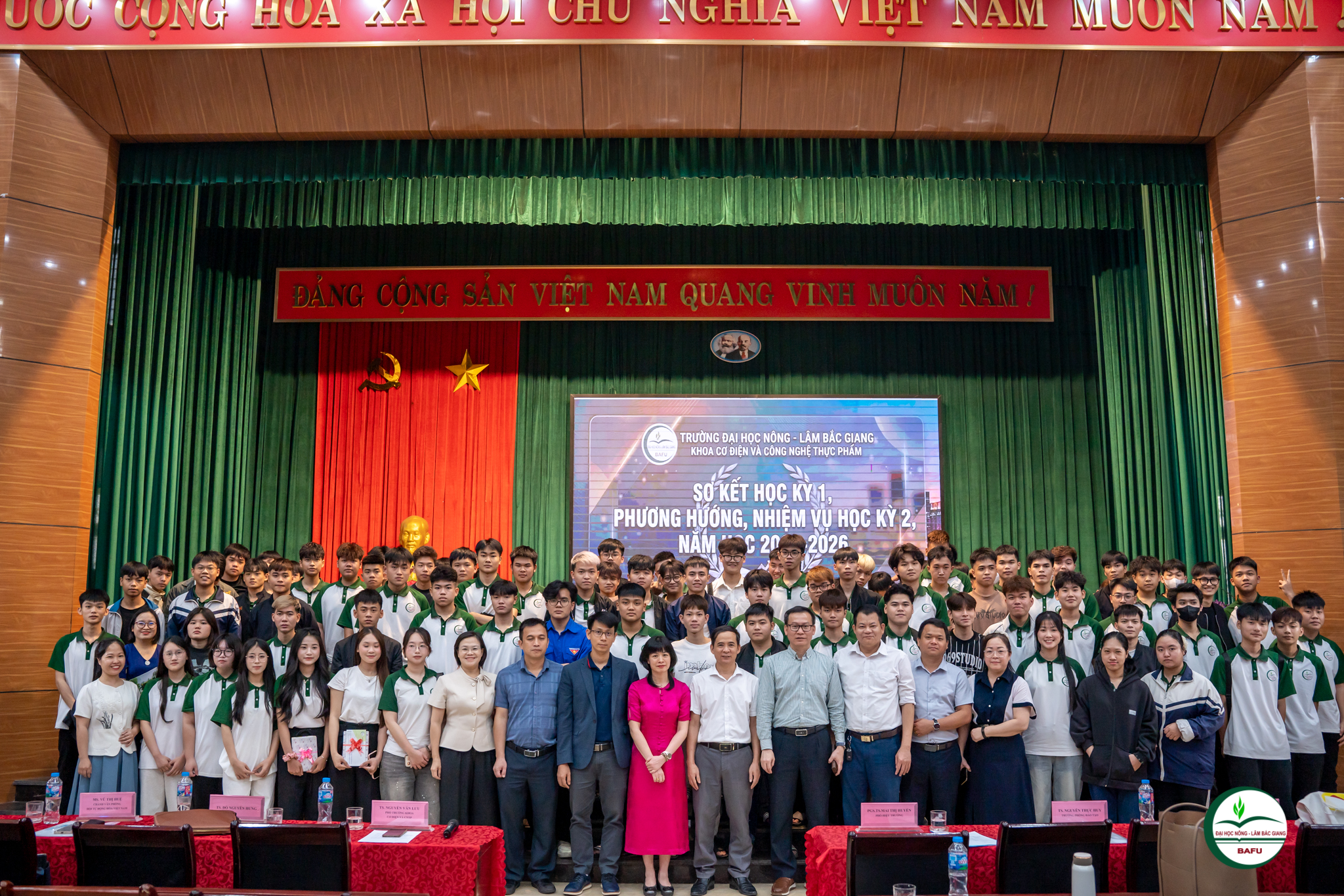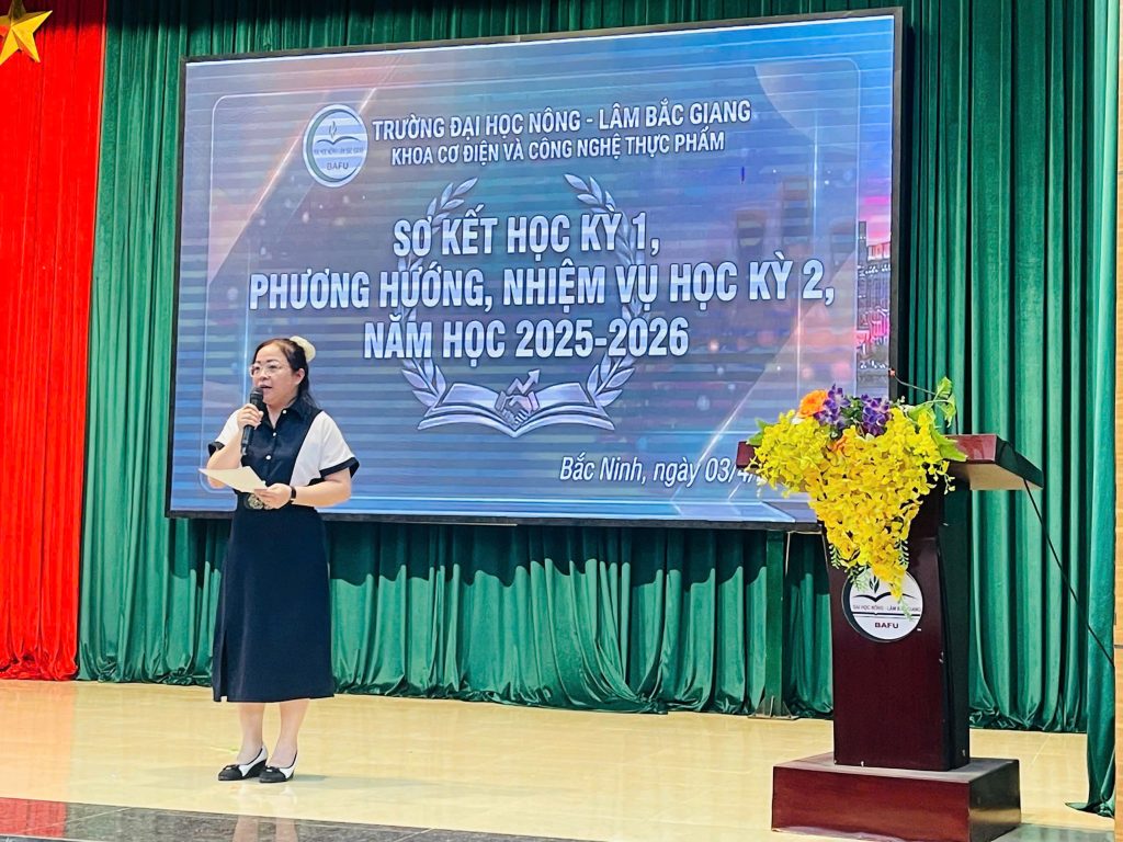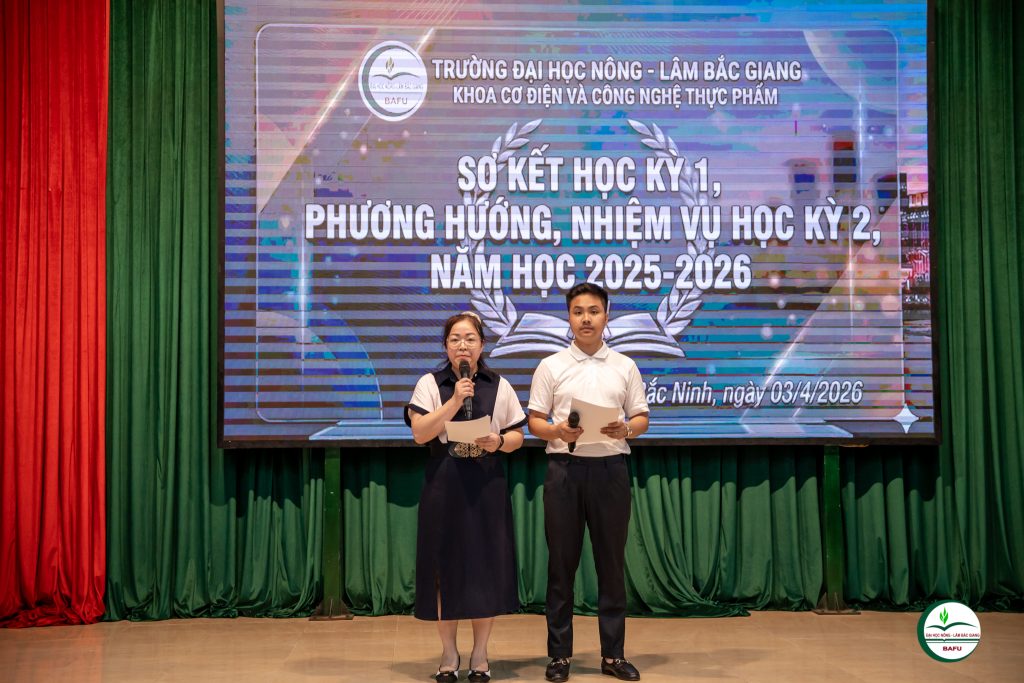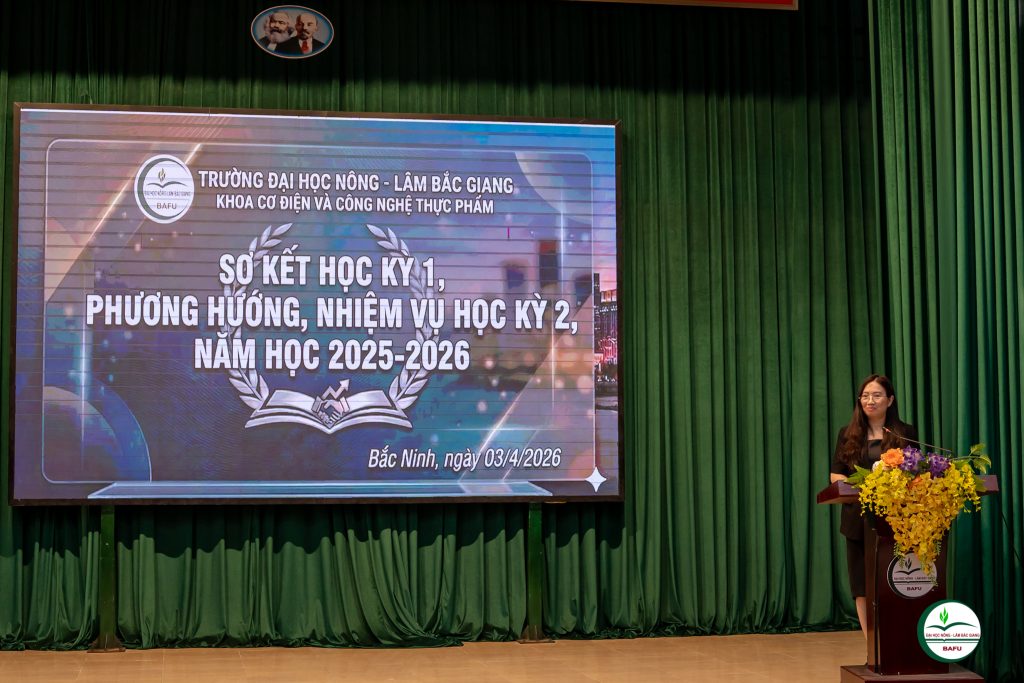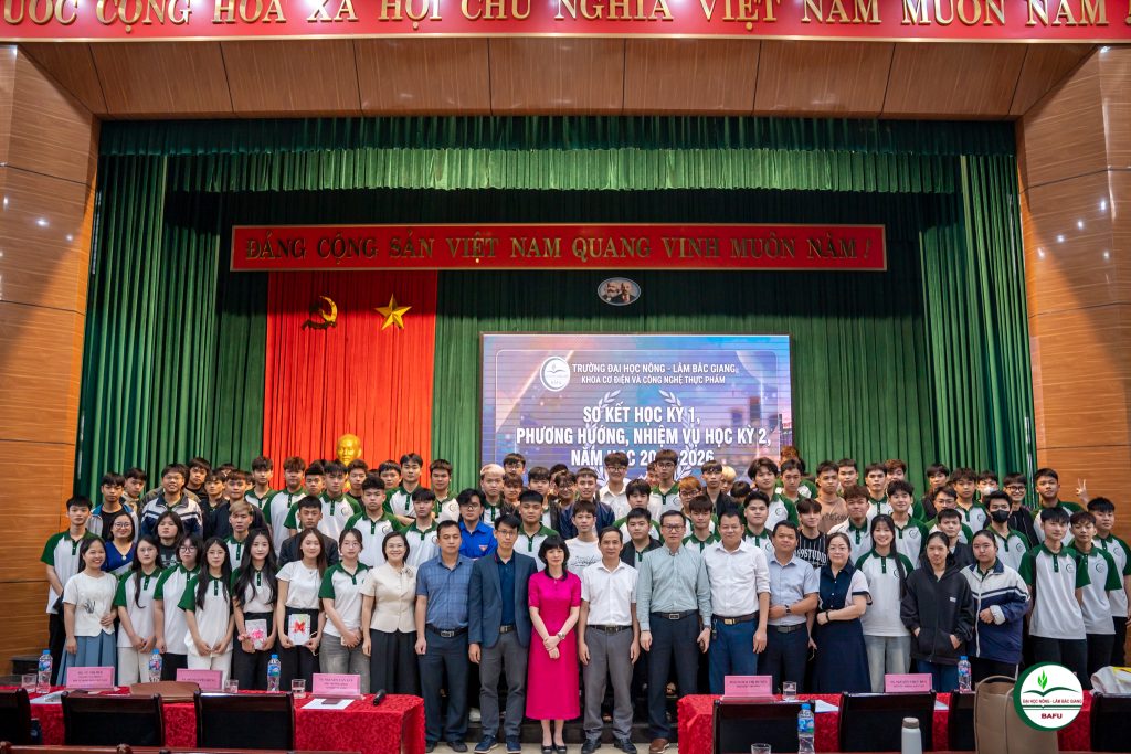Chiều ngày 03/4/2026, tại Hội trường B5, Khoa Cơ điện và Công nghệ Thực phẩm đã tổ chức Chương trình Sơ kết học kỳ I năm học 2025–2026 với sự tham gia của đông đảo cán bộ, giảng viên, sinh viên cùng các chuyên gia và đại biểu khách mời.